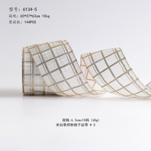 オフホワイトのシャンパンピンクのチェック柄リボン# 5 6.3*10ヤード