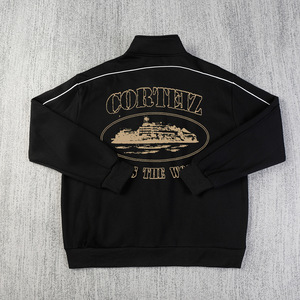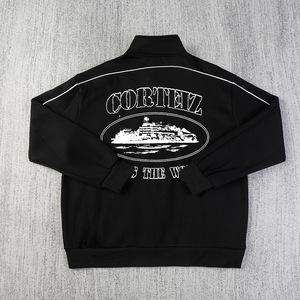 クロテイズ アメリカンレトロプリントジャケット スタンドカラー 裏起毛セットアップ ジップアップ ハイストリート 男女兼用 カジュアルパンツ