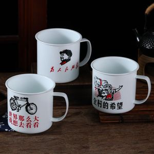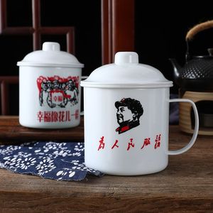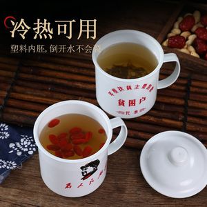 毛主席蓋付きレトロ古い茶シリンダー大容量カップマグカップPP輸入材料はエナメルカップに似せている