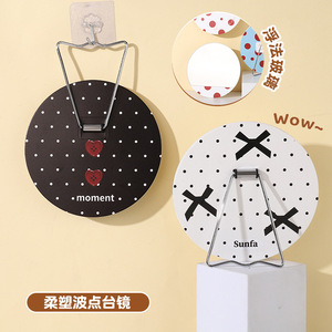 Binhongjia 漫画プラスチックテーブルミラーかわいいガーリーハート学生化粧鏡吊り下げブラケット兼用テーブルミラー