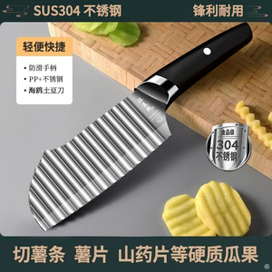 304不锈钢波纹刀家用狼牙土豆刀具洋芋花式波浪刀金丝薯条刀
