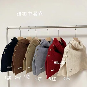 フォークボタンの高襟のプルオーバー