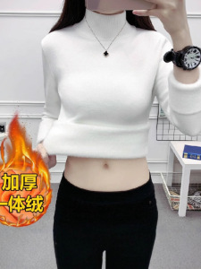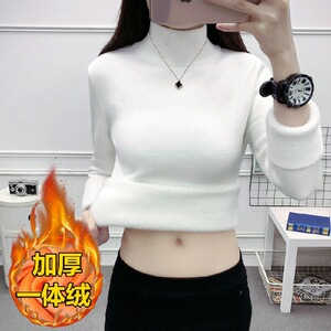 一体のベルベットの半高襟のセーターの底のシャツの女性のベルベットの厚いニットの秋の冬の中に暖かい服を着ます