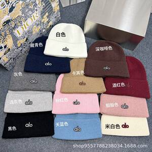 24秋冬の新型alo純綿ニット帽ファッションカジュアル韓国版ins風女性百合保温耳保護毛糸帽