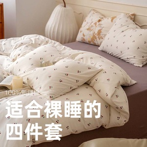 A級純綿ニット綿4点セット 天竺綿布団カバー ベッドシーツ 肌に優しい裸寝寝具4点セット 裸寝レベル