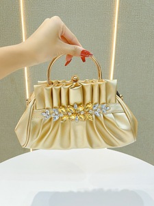 新型欧米のレトロなダイヤモンドを入れた女性の手は、バッグのしわを持っています。