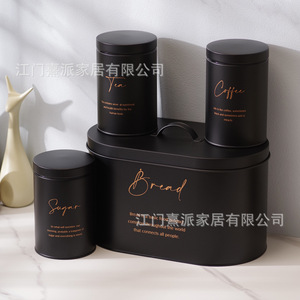 国境を越えた4点セットのパン箱コーヒー豆茶葉糖収納缶キッチン金属密封缶黒雑穀瓶