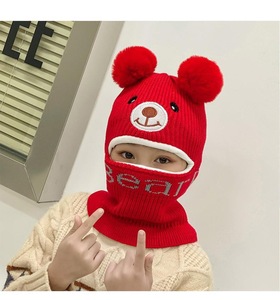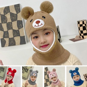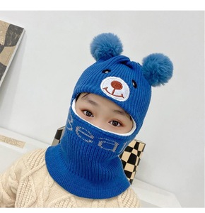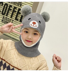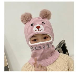 子供の帽子のマスクは首を囲む一体の男の子の女の子の綿の帽子の冬のベルベットの厚い保温の毛糸の帽子のニットの帽子をかぶせます。