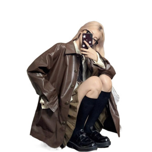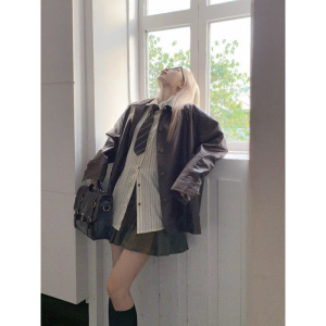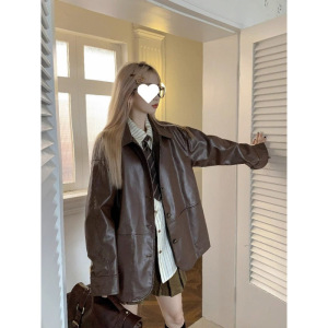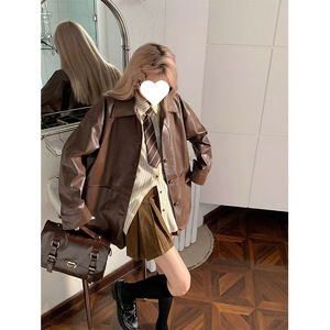 大きいサイズの太ったmmの美ラードのカレーの毛皮の服の機関車のジャケットの女性の2024春秋学院の風のアメリカ式のpu皮のコートの潮