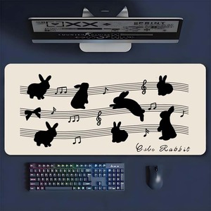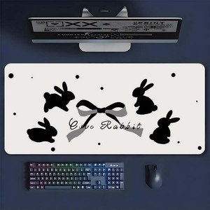 マウスパッドの巨大な手描きの蝶結びのウサギの大きいキーボードのパッドを大きくして、ロックを厚くします。