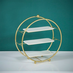 金色の結婚式のデザート台はヨーロッパ式のケーキ棚を並べます。