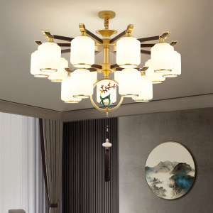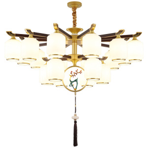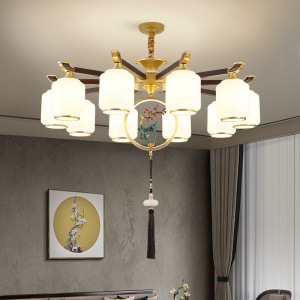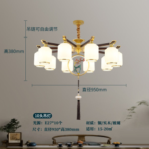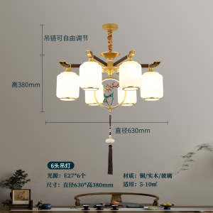 全銅シャンデリア新しい中国風のリビングルームランプハイエンドヴィラダイニングルーム寝室ホール無垢材ホーム2025新しいランプ