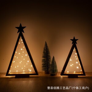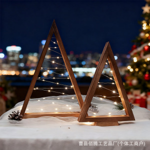 木製の発光クリスマスツリー装飾品、ライト付き無垢材、家の雰囲気を演出する三角形の飾り、ホリデーギフト