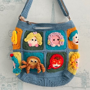アニメかわいい醜い人形の表情斜めショルダーバッグ手作りショルダーバッグ女子毛糸鉤織完成品