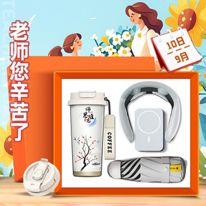 忘れられない先生の恩人 4 点セット - オレンジ [スズラン カップ + インターネット有名人の傘 + 頸椎器具 + 磁気パワーバンク]