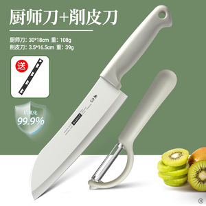 乳白吊り柄シェフナイフ+果物ナイフ【ナイフカバー無料】