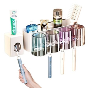 アップグレード丨歯ブラシ収納ラック - カップ4個+歯磨き粉絞り器
