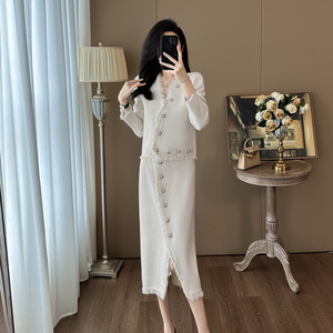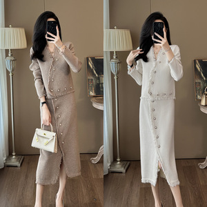 7590フランス式小香風秋冬新作vネックカーディガンのニットセット