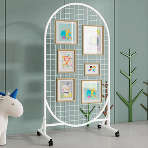 学校の幼稚園の書道の展覧会の半楕円の掛け物の結婚式の背景の壁の楕円の縦の金属の格子の展示棚