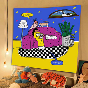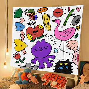 漫画のキャラクターのドーパミンの背景の壁面の芸術の暗いinsの壁の布の寮の寝室は装飾の布のタペストリーを改造します。