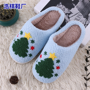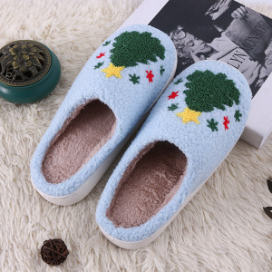 新しい青いクリスマスツリーの家の保温綿のスリッパクリスマスの厚い底のぬいぐるみのスリッパとベルベットの厚い滑り止め