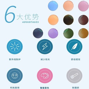 フォトクロミックレンズ 1.56 1.61 1.74 アンチブルーライトフォトクロミックレンズ グレーティー近視メガネ付き ブルーパウダーパープルグリーン