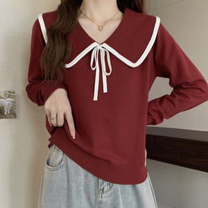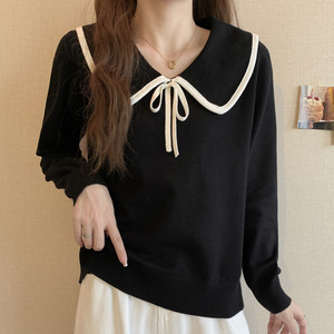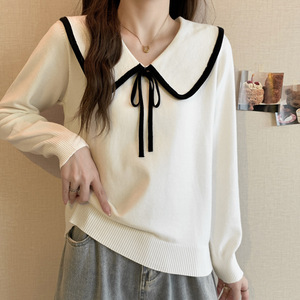 实拍2025秋冬学院风娃娃领打底女针织衫上衣