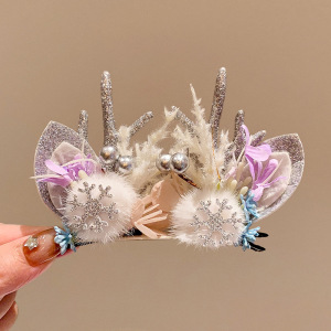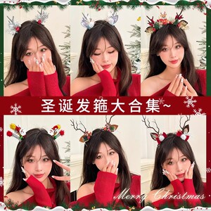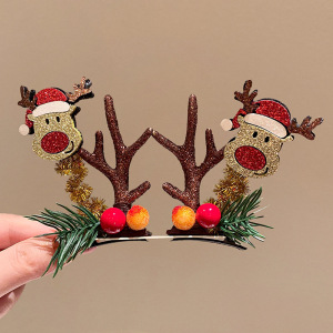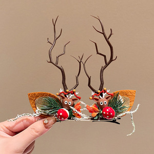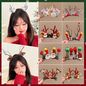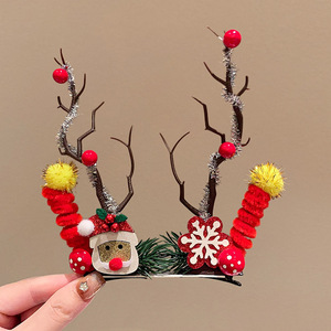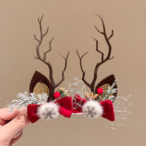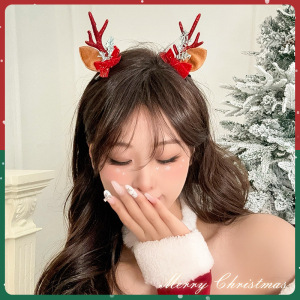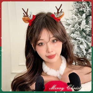 クリスマス髪飾りヘラジカ角ヘアクリップクリスマスクリップ子供大人髪飾り女性ネット赤装飾品ヘアバンド