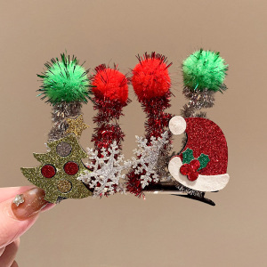 13#クリスマスツリーの毛玉スノーフレーククリップ