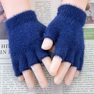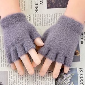 二半指フェイクミンク手袋 秋冬 学生用 筆記用 女性用 指出し サイクリング手袋 無地 通勤用 防寒手袋