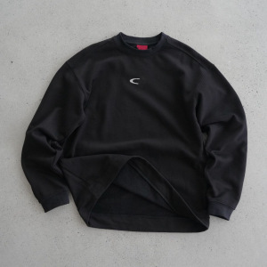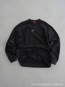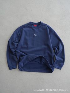 现货 vintage复古圆领宽松休闲刺绣中古款薄拉绒运动套头卫衣加绒