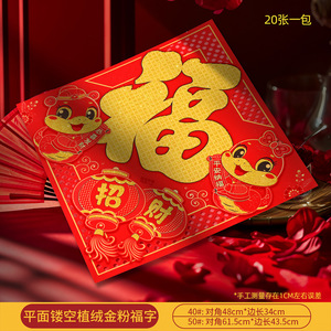 马年新款高档植绒金粉平面镂空福字门贴新年春节摆摊年画厂家批货