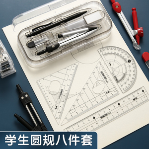 朝光コンパスセット8点セット定規活動鉛筆消しゴム学生用試験学習専門携帯多
