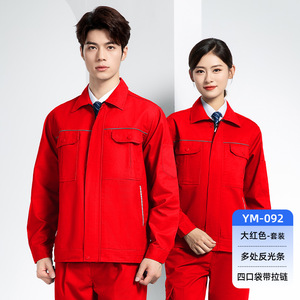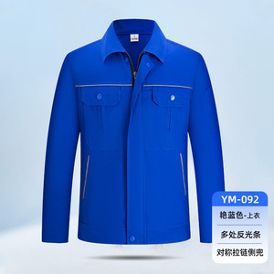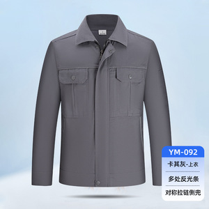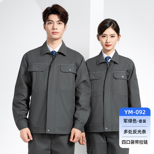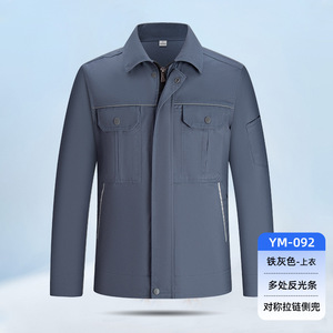 春と秋の作業服セットは男性の耐摩耗性建築工事工場の長袖労働保護服の純色の工装をカスタマイズします。