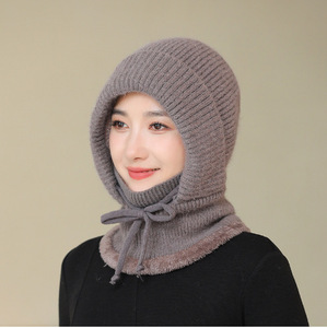 新型の帽子の女性は冬に首を囲む一体の毛糸に乗って耳を保護します。
