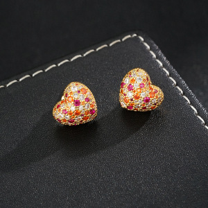 ディザトーン生中継熱売S925銀針満ドリル愛ピアス女性高級感虹耳飾り精緻桃心イヤリング