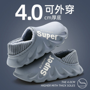 防水男性綿スリッパ冬の家庭内の新しい糞感バッグと綿靴冬のカップルの外着