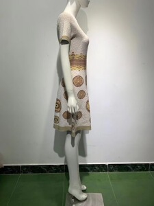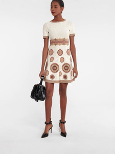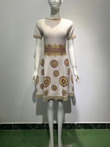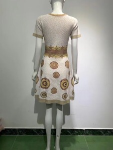Alaia外国貿易ファッションの新型丸首半袖ニットジャカードAは民族風の修身ワンピースの婦人服を並べます。