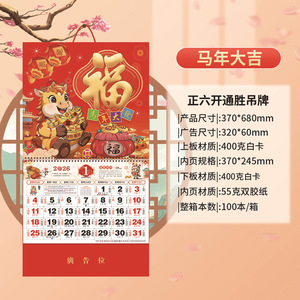 2026 新しい馬年絶妙な壁掛けカレンダー Zheng Liukai Tongsheng クラフト Fu ブランド写真広告印刷ロゴ