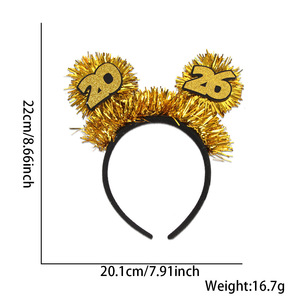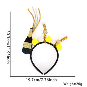 2026 新年スターカラフルなストリップヘッドバンドヘアアクセサリー新年パーティーの装飾ワイングラスレター五芒星ブラックゴールドヘッドバンド
