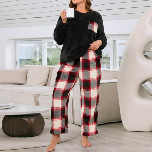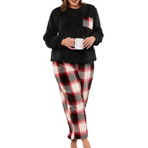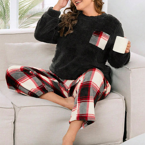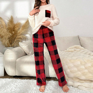 欧米の越境秋冬の新型の両面の毛の女性の家の服の保温のパジャマの長袖のズボンのスーツは外で着ることができます。