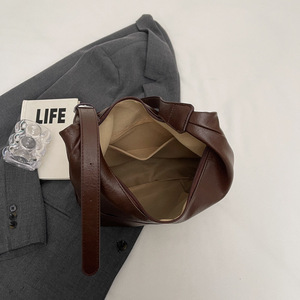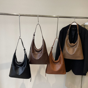 大容量トートバッグ女性2024新型秋冬茶色バケツバッグ通勤脇下バッグシングルショルダーバッグ