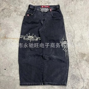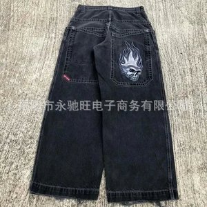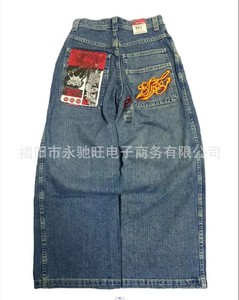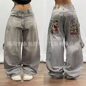 流行のヒップホップのアメリカのレトロな春と秋の新型の個性のゆったりしているストレートのジーパンの広い足のカジュアルなモップのズボン