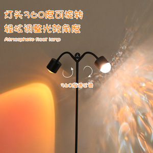 ブラックディスク双頭二股夕日水紋雰囲気フロアランプRGB16色デリバリーリモコン