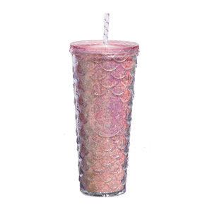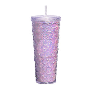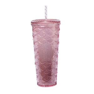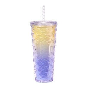 メーカー直販 二層構造プラスチックストローカップ おしゃれな新作 魚鱗カップ 大容量 ドリアンカップ ウォーターカップ 越境で人気販売中