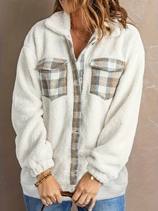 アマゾンの国境を越えた街頭ファッションの白い絨毛コート欧米の対外貿易の婦人服は色の格子の白い毛のコートにぶつかります。