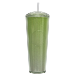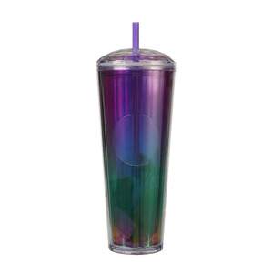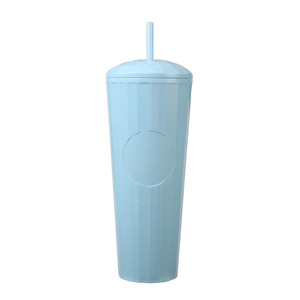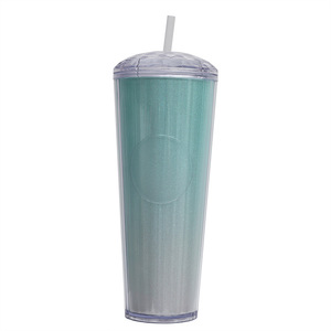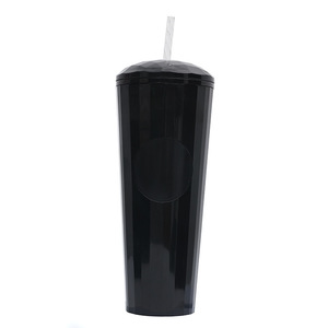 夏用女性向け二重構造シンプルプラスチックカップ 大人向けクリエイティブで持ち運びやすいおしゃれな冷水用ストロー付き携帯カップ