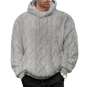 アメリカ風秋冬メンズスウェットシャツ、カジュアル、ハイストリート、ジャカード菱形、両面フリース、ゆったりプルオーバーフード付きスウェットシャツ