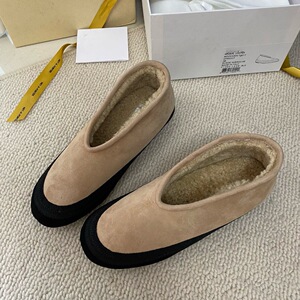 小众秋冬新款皮毛一体羊毛靴真皮保暖棉鞋平底懒人一脚蹬雪地靴女
