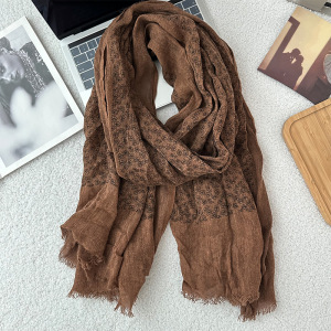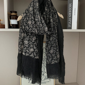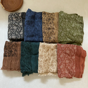 秋冬の新型レトロ文芸保温綿麻プリントマフラー腰果鳳尾シンプルなセット